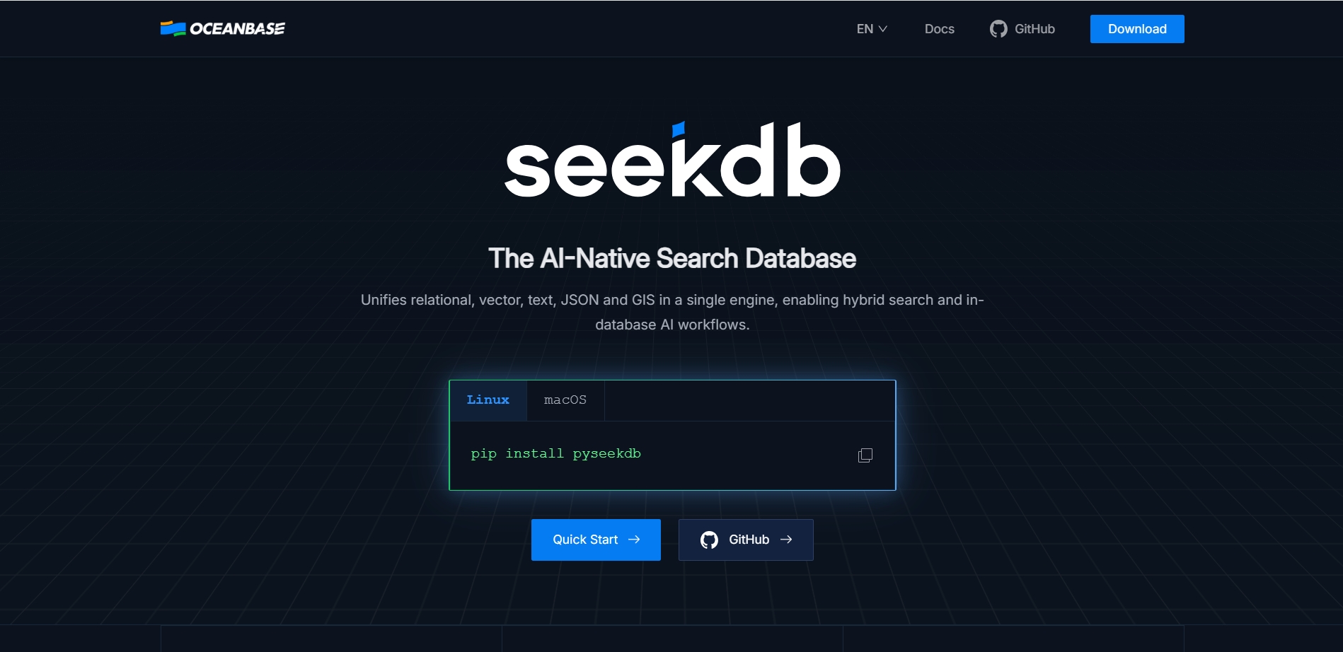 Visit the official OceanBase website. Download the latest version of seekdb for your operating system.Install SeekDB